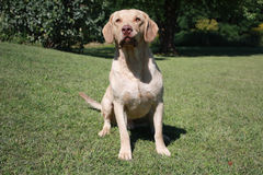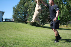 Diesel is our stud dog. He is a well-built dog with great physical characteristics. Diesel will retrieve all day long and then will come sit right in your lap if you let him. With outstanding champion bloodlines, Diesel is proving every day his place in his pedigree. Whether he is jumping 7 feet in the air, swimming across the river, or hunting through the woods, Diesel has shown to be a well-rounded dog. His temperament and personality are second to none!